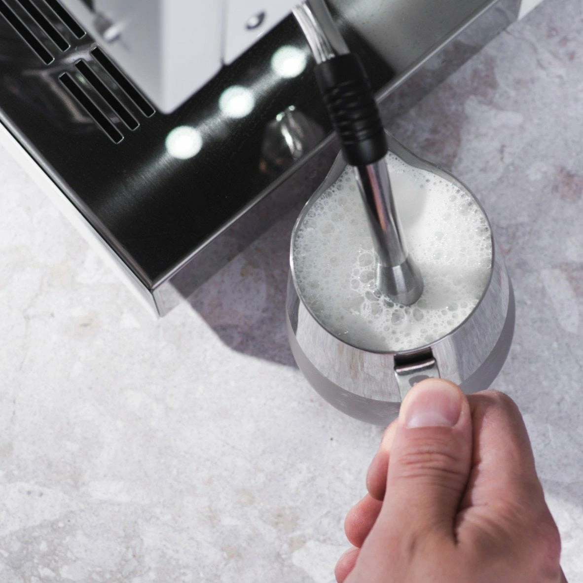 - Electronic steam control with an advanced no-burn steam wand for safety.