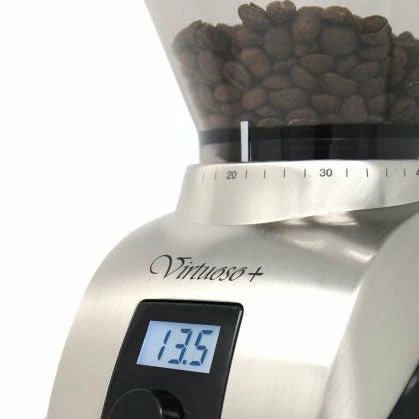 This is a popular home coffee grinder among baristas and is a level up from the Baratza Encore Espresso Grinder. The Virtuoso+ features a nicer burr set for better precision grinding and a digital timer for easy programming. This coffee burr grinder is perfect for French press, drip, and espresso brews.