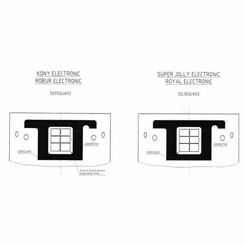 This is affixed to the outside of the funnel with the orientation hole facing you on the bottom right as it placed against the funnel. For the Royal and Super Jolly the orientation hole should be on the bottom left. The sticky side of the sticker is then placed on top of this “hook” side to the right) holding it onto the funnel. Requires an adhesive gasket to keep it in place.