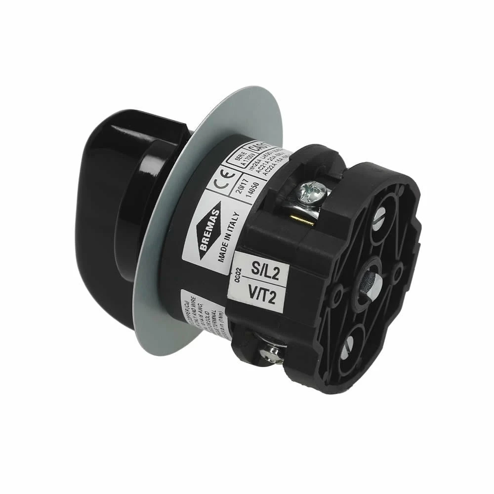Rotary on/off replacement switch for Mazzer grinders. 0-1 positions, 20A 690V. If you have selected this switch as a replacement for a timer switch, you have chosen wisely. Screws for switch plate: M3 x 12 mm.