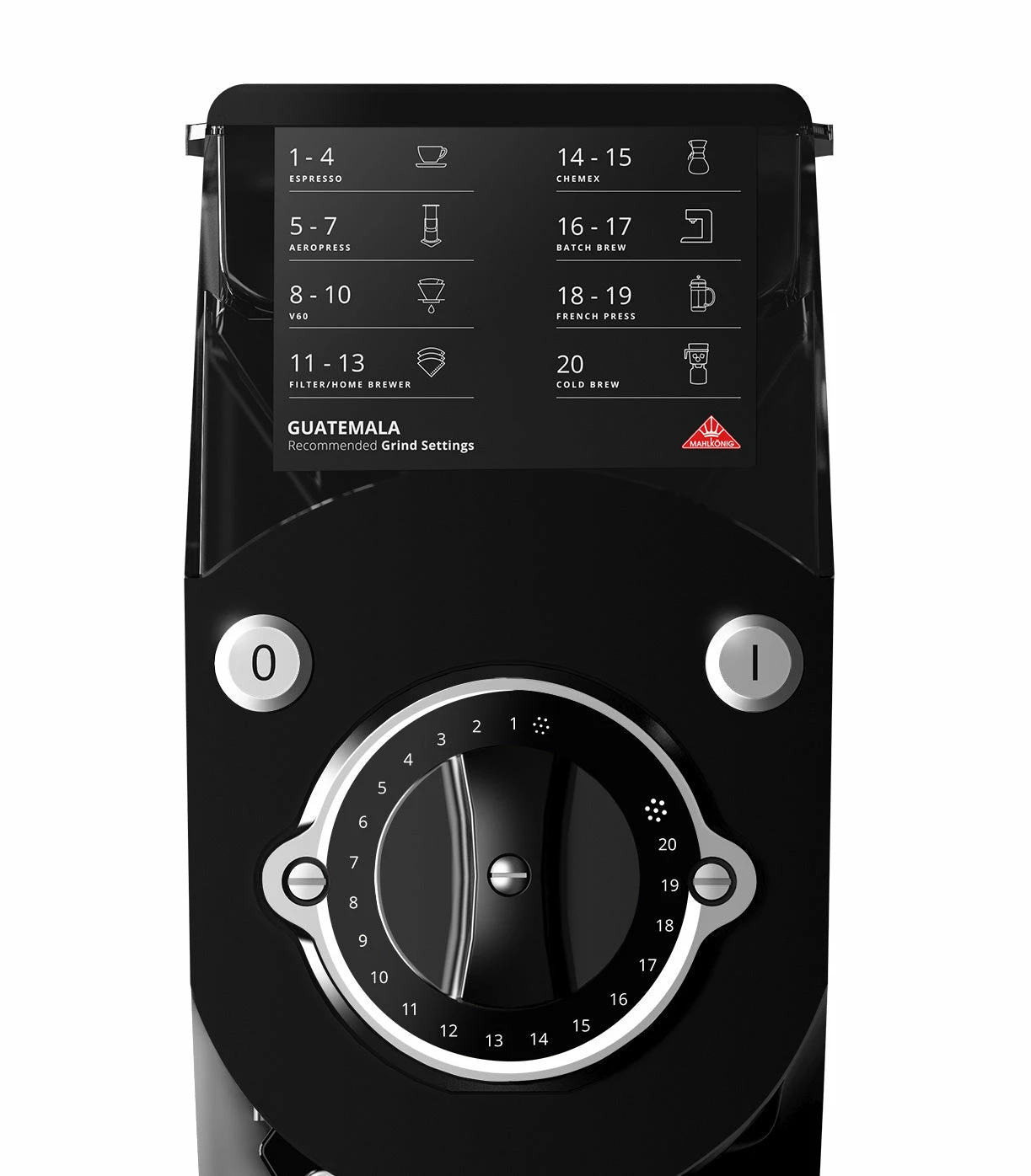 The hopper was increased in capacity for better efficiency. Another improvement was the new burr geometry: this helped with minimizing grind retention so that you can go cup to cup without contamination from bowl to bowl. We also really like the improved usability of this electric coffee grinder. The on/off switch is in a better location and can now be found on the front of the machine and it also has a handy guide for determining grind size.