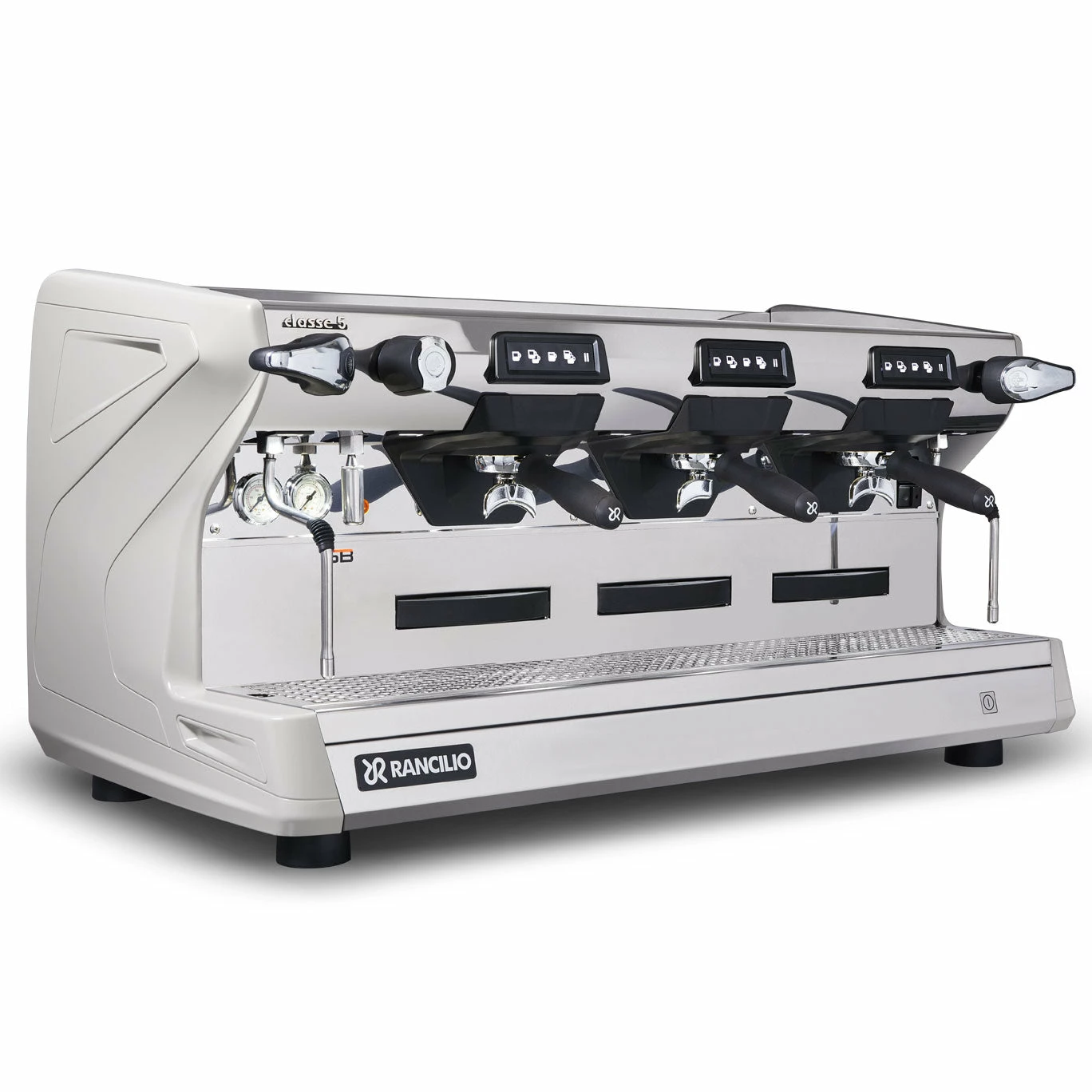 The Classe 5 USB Tall is designed around pouring shots right into a cup. This is great for quick service and ideal for a small staff. Cup height is probably best for up to 16 oz., but will accommodate up to 20 oz. Great for flavored drinks like lattes and mochas. It has a retractable tray option for when you want to pull straight espresso shots and this lower clearance is better for temperature control and less splatter. The Classe 5 USB Tall is auto volumetric and absolutely perfect for drive-thru espresso service and businesses with lower volume daily coffee sales. Bakeries, libraries, food trucks, and large offices love this commercial espresso machine!