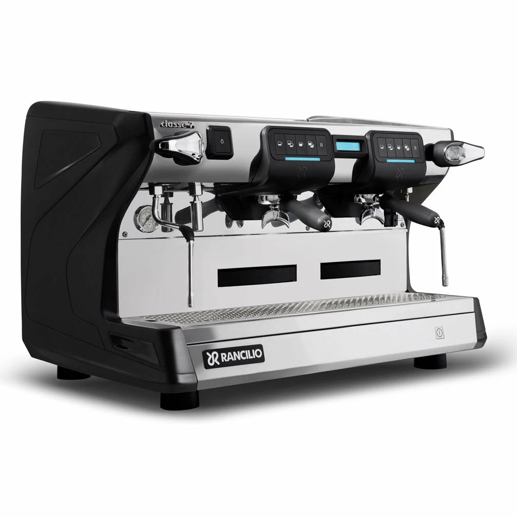 This is your mid-range espresso machine. A step up from the Classe 5, the Rancilio Classe 7 features a digital control panel and a slightly larger heating element for a higher volume business. Perfect for cafes, food trucks, and businesses making about 300-500 drinks per day with a specialty coffee focus.Â
